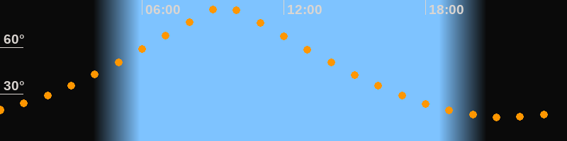 | Höchster Stand (Kulmination) | 09:28 Uhr (h = 86,1°) |