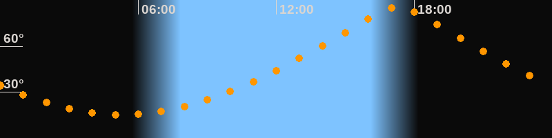 | Höchster Stand (Kulmination) | 17:17 Uhr (h = 86,1°) |