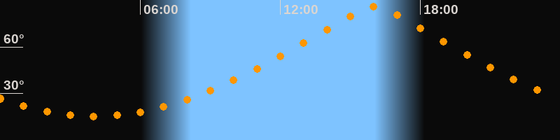 | Höchster Stand (Kulmination) | 16:02 Uhr (h = 86,1°) |