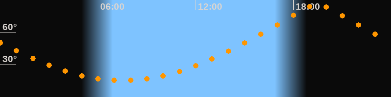 | Höchster Stand (Kulmination) | 19:29 Uhr (h = 86,1°) |