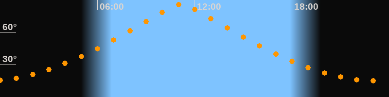 | Höchster Stand (Kulmination) | 11:09 Uhr (h = 86,1°) |
