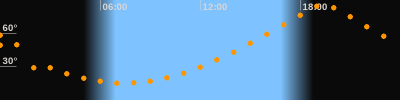 | Höchster Stand (Kulmination) | 19:24 Uhr (h = 86,1°) |