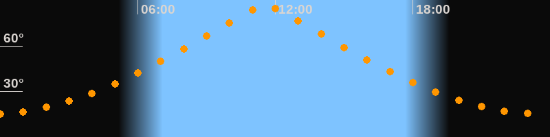 | Höchster Stand (Kulmination) | 11:34 Uhr (h = 86,1°) |