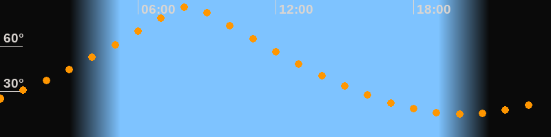 | Höchster Stand (Kulmination) | 08:13 Uhr (h = 86,1°) |