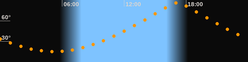 | Höchster Stand (Kulmination) | 17:10 Uhr (h = 86,1°) |