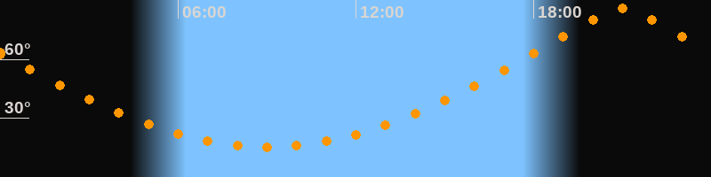| Höchster Stand (Kulmination) | 20:59 Uhr (h = 86,1°) |