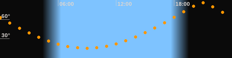 | Höchster Stand (Kulmination) | 20:56 Uhr (h = 86,1°) |
