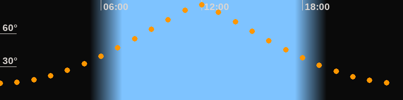 | Höchster Stand (Kulmination) | 11:53 Uhr (h = 86,1°) |
