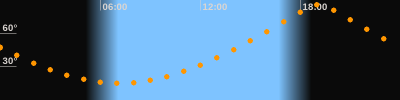 | Höchster Stand (Kulmination) | 19:07 Uhr (h = 86,1°) |