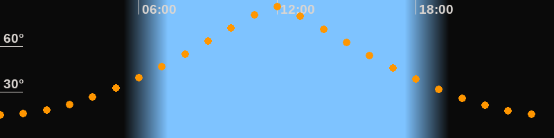 | Höchster Stand (Kulmination) | 11:56 Uhr (h = 86,1°) |