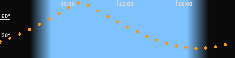 | Höchster Stand (Kulmination) | 08:14 Uhr (h = 86,1°) |