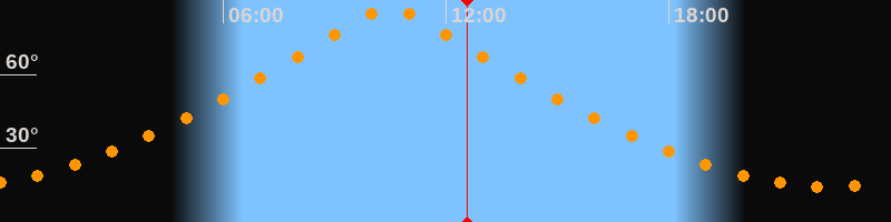| Höchster Stand (Kulmination) | 10:29 Uhr (h = 87°) |