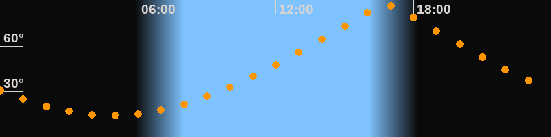 | Höchster Stand (Kulmination) | 16:48 Uhr (h = 87°) |