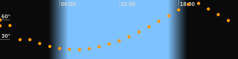 | Höchster Stand (Kulmination) | 19:35 Uhr (h = 87°) |