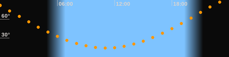 | Höchster Stand (Kulmination) | 23:06 Uhr (h = 87°) |