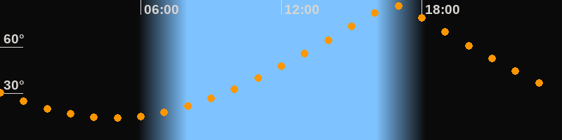 | Höchster Stand (Kulmination) | 16:47 Uhr (h = 87°) |