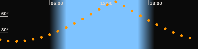 | Höchster Stand (Kulmination) | 13:50 Uhr (h = 87°) |