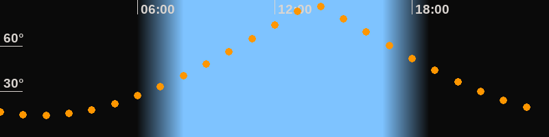 | Höchster Stand (Kulmination) | 13:43 Uhr (h = 87°) |