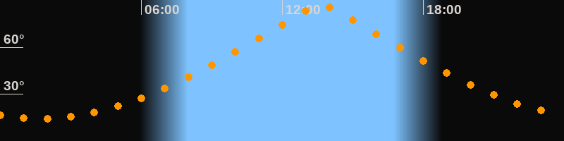 | Höchster Stand (Kulmination) | 13:40 Uhr (h = 87°) |