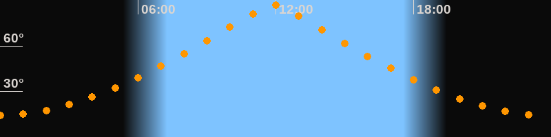| Höchster Stand (Kulmination) | 11:53 Uhr (h = 87°) |