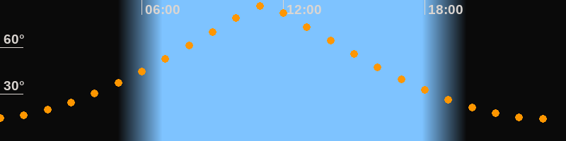 | Höchster Stand (Kulmination) | 11:10 Uhr (h = 87°) |