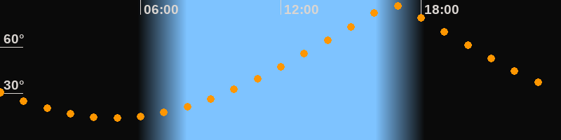 | Höchster Stand (Kulmination) | 16:49 Uhr (h = 87°) |
