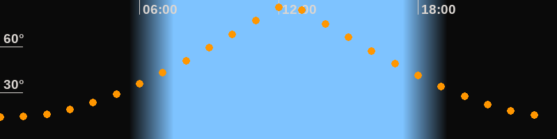 | Höchster Stand (Kulmination) | 12:23 Uhr (h = 87°) |