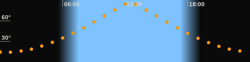 | Höchster Stand (Kulmination) | 12:28 Uhr (h = 87°) |