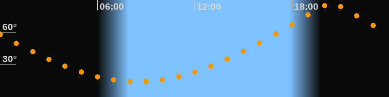 | Höchster Stand (Kulmination) | 20:26 Uhr (h = 87°) |