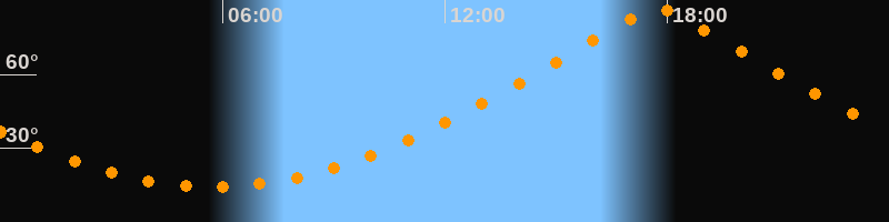 | Höchster Stand (Kulmination) | 17:44 Uhr (h = 87°) |