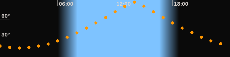 | Höchster Stand (Kulmination) | 14:00 Uhr (h = 87°) |