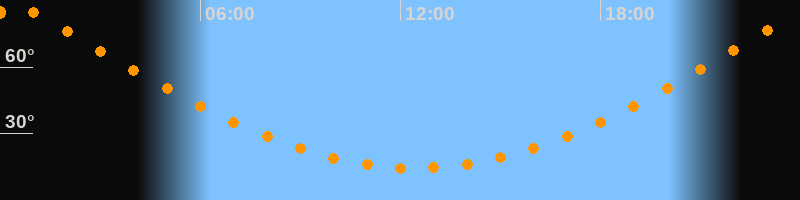 | Höchster Stand (Kulmination) | 00:27 Uhr (h = 87°) |