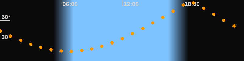 | Höchster Stand (Kulmination) | 18:44 Uhr (h = 87°) |