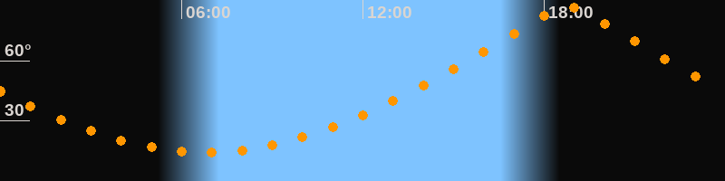 | Höchster Stand (Kulmination) | 18:47 Uhr (h = 87°) |