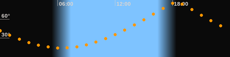 | Höchster Stand (Kulmination) | 18:24 Uhr (h = 87°) |