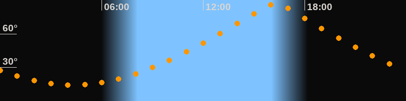 | Höchster Stand (Kulmination) | 16:15 Uhr (h = 87°) |