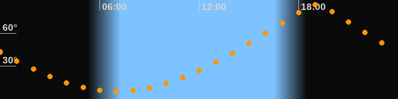 | Höchster Stand (Kulmination) | 19:02 Uhr (h = 85,8°) |