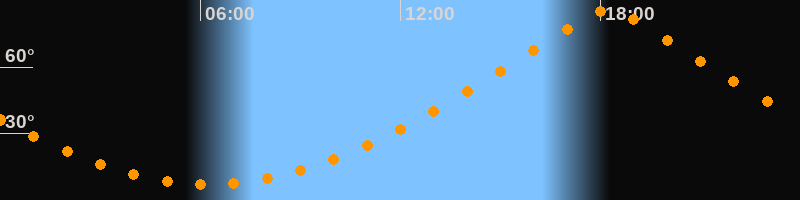 | Höchster Stand (Kulmination) | 18:14 Uhr (h = 85,8°) |