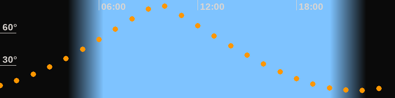 | Höchster Stand (Kulmination) | 09:40 Uhr (h = 85,8°) |