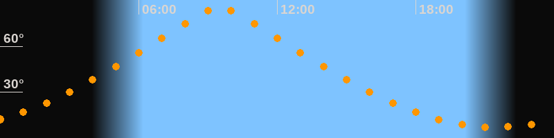 | Höchster Stand (Kulmination) | 09:30 Uhr (h = 85,8°) |