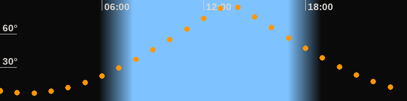 | Höchster Stand (Kulmination) | 13:33 Uhr (h = 85,8°) |