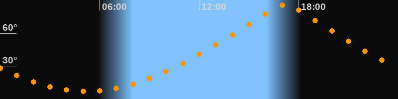 | Höchster Stand (Kulmination) | 17:10 Uhr (h = 85,8°) |
