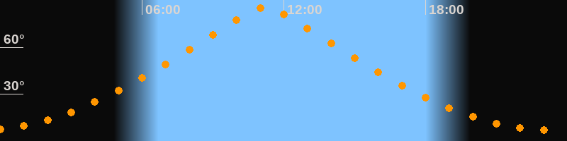 | Höchster Stand (Kulmination) | 11:13 Uhr (h = 85,8°) |