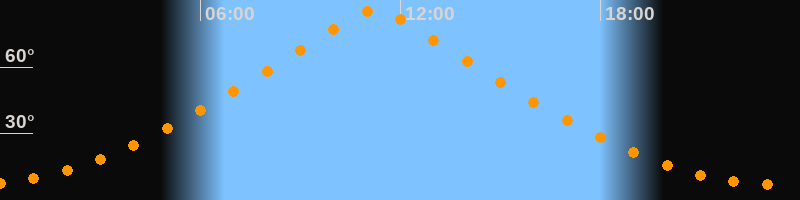 | Höchster Stand (Kulmination) | 11:14 Uhr (h = 85,8°) |