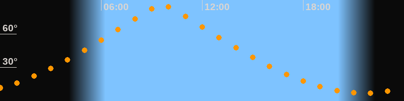 | Höchster Stand (Kulmination) | 09:37 Uhr (h = 85,8°) |
