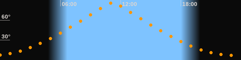| Höchster Stand (Kulmination) | 11:11 Uhr (h = 85,8°) |