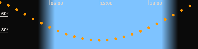 | Höchster Stand (Kulmination) | 00:01 Uhr (h = 85,3°) |