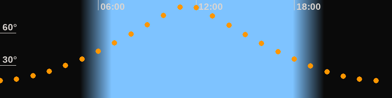 | Höchster Stand (Kulmination) | 11:28 Uhr (h = 85,3°) |