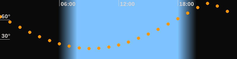 | Höchster Stand (Kulmination) | 21:09 Uhr (h = 85,3°) |