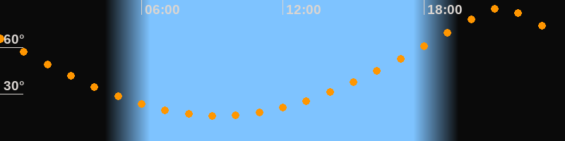 | Höchster Stand (Kulmination) | 21:15 Uhr (h = 85,3°) |